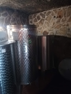 What an amazing place we have unearthed. Will get to the views later of the rolling terrain, but our hosts, 2 Slovenians, not a word of english without google translate, but feeding us wine and bread/cheese/salami and bringing us into their home and vineyard. Showed us where the magic happens too, with his wine vats.
