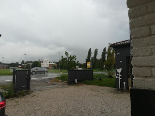 We woke up just after 8am, and realised it was raining. Raining! In Italy! After the heat we had yesterday? Mum even said she saw chunks of ice/rain drop out of the sky. It started to thunder and lightning as well. It wasn't like it was cold or anything - the air still felt very warm, it's just the rain was coming down heavy.
